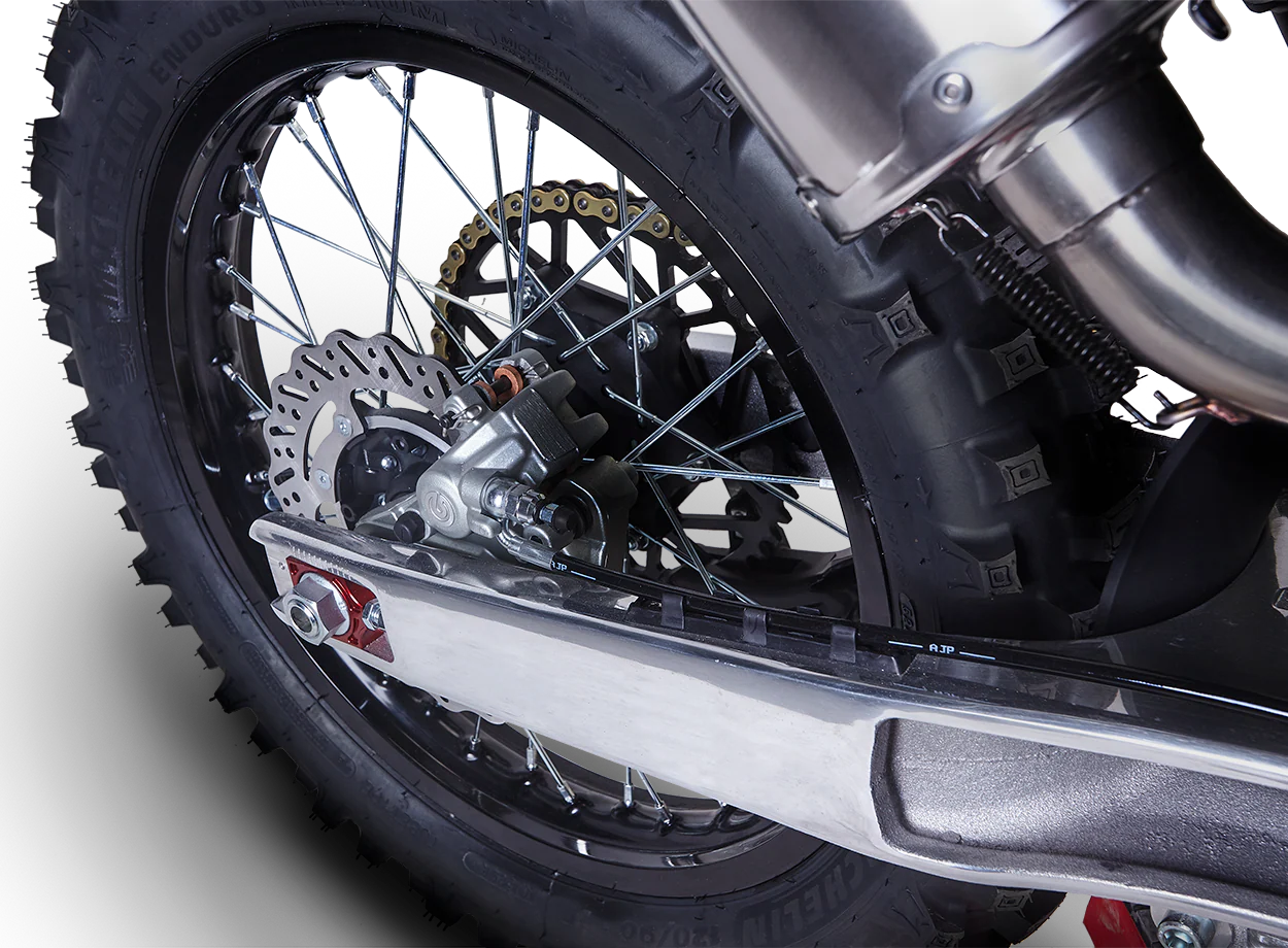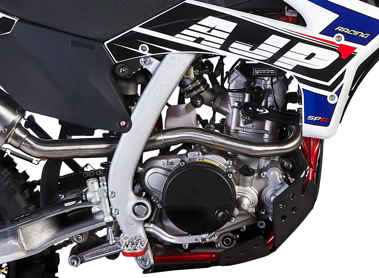 Crafted in-house with a hybrid steel-aluminum system and flexible geometry, AJP frames offer reliable and performance-oriented riding for all levels. The SPR line is upgraded to meet championship racing standards providing playful flick ability and maxed-out throttle response.