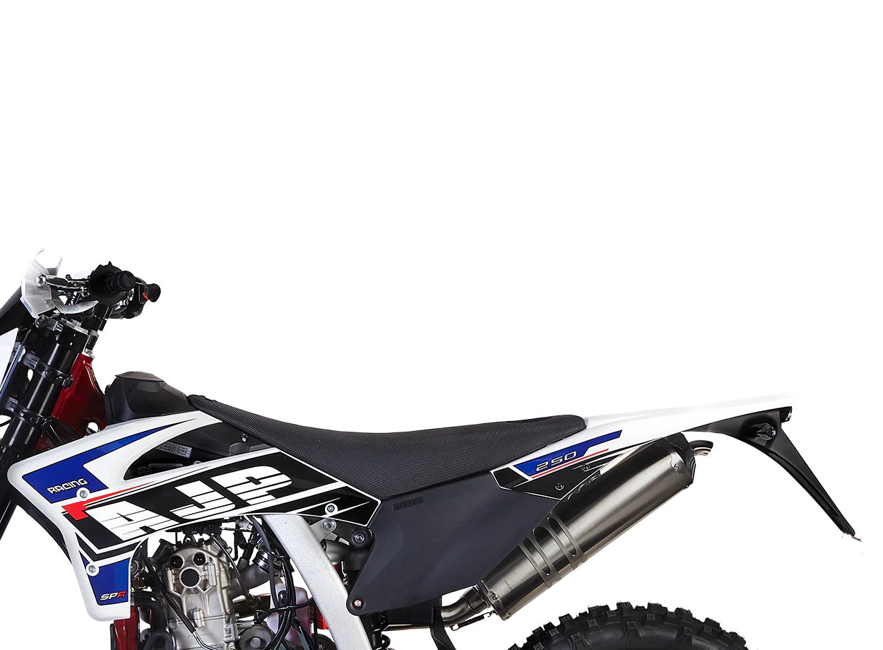 Experience the future of adventure with the SPR 250 Enduro. Its ultra-lightweight chassis, reliable 249cc engine, and sophisticated suspension provide unmatched performance on any terrain. The fully-adjustable ZF Sachs® suspension enhances handling, giving you the freedom to choose your path and push the limits.