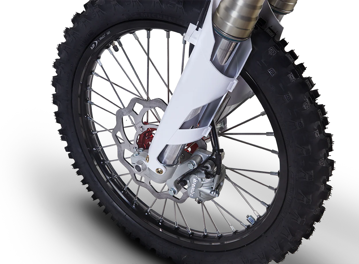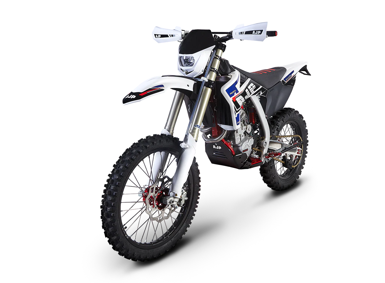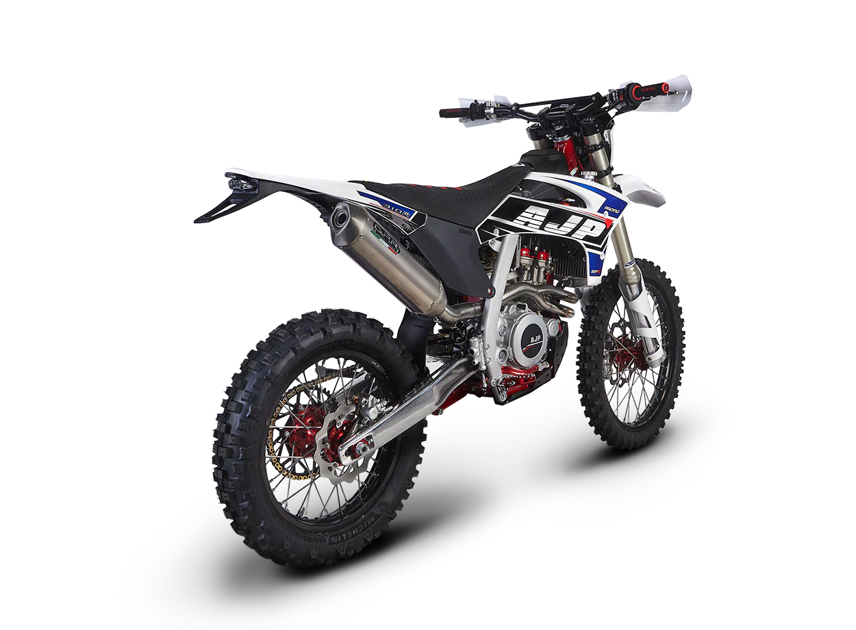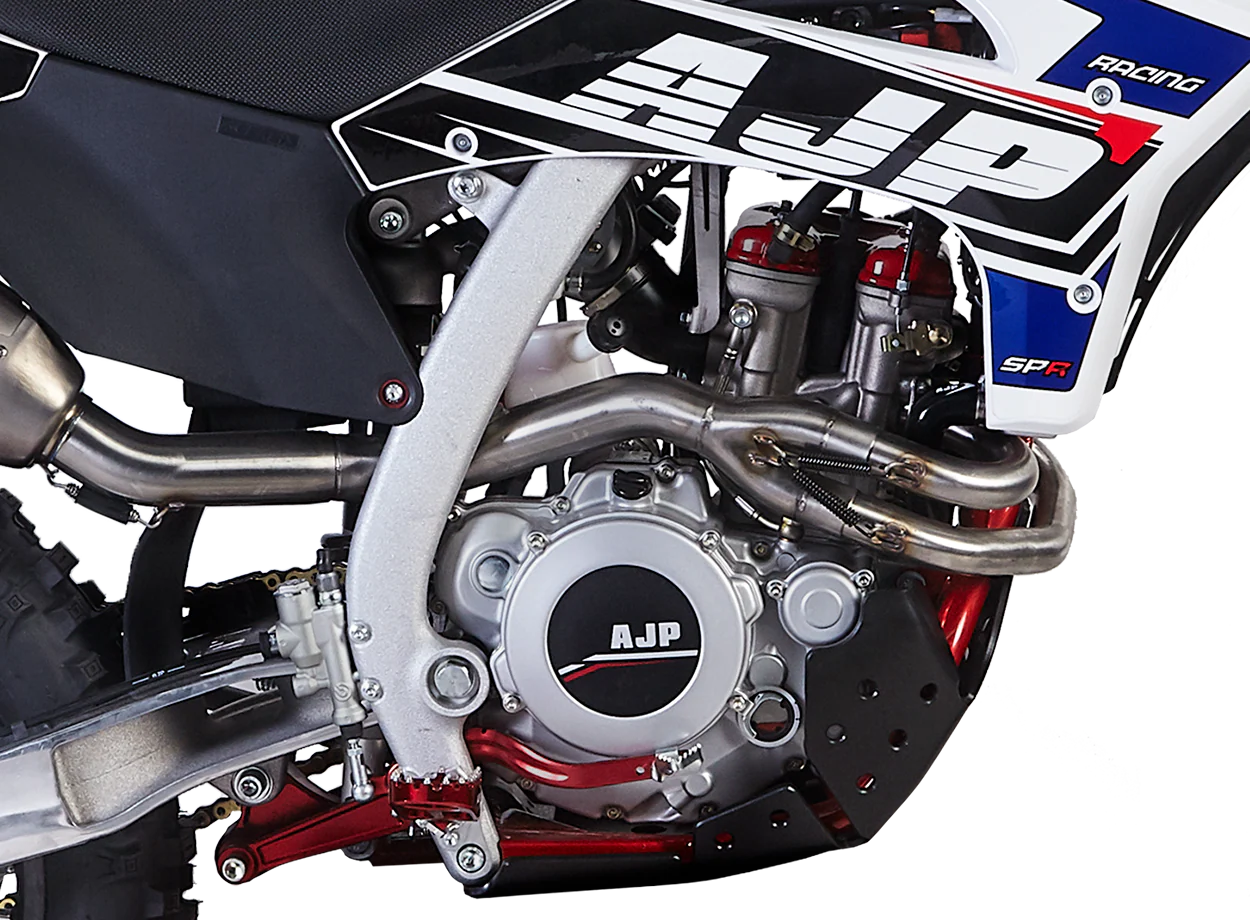 AJP frames are expertly crafted in-house using a hybrid steel-aluminum system and flexible geometry, providing reliable and performance-oriented riding for all levels. The SPR line meets championship racing standards, offering maxed-out throttle response and playful flick ability.