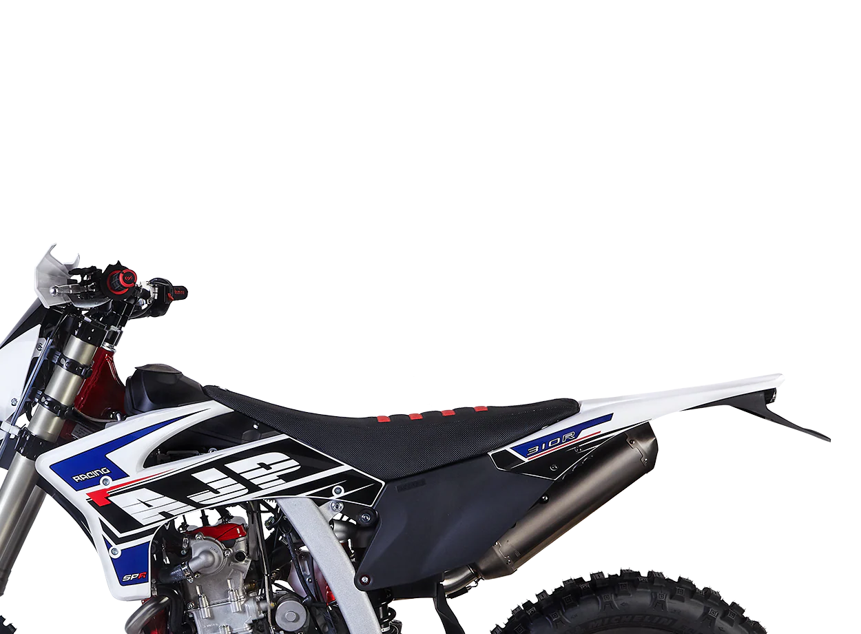 The SPR 310R is a performance-focused 4-stroke machine, offering strong torque, extreme handling, and agility. Its reliable fuel-injected mono-cylinder allows for easy maintenance, and it features a power-focused 6-speed transmission and progressive suspension setup by ZF Sachs® .