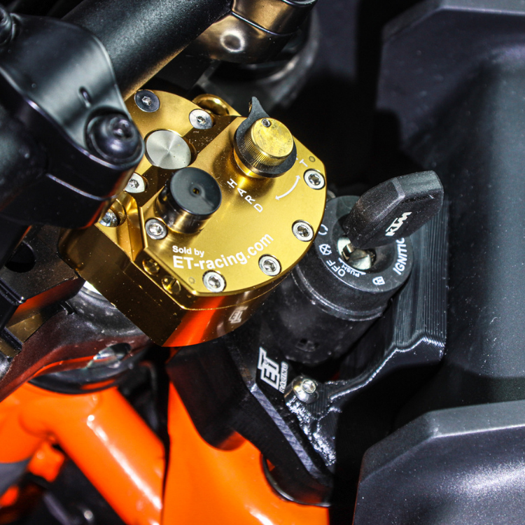 Precision steering damper mounting bracket engineered for KTM 390 Adventure R and Enduro R models (2025-2026). This mounting-only bracket accommodates both Scott and Ohlins steering dampers, delivering enhanced handling control without the full damper system cost.